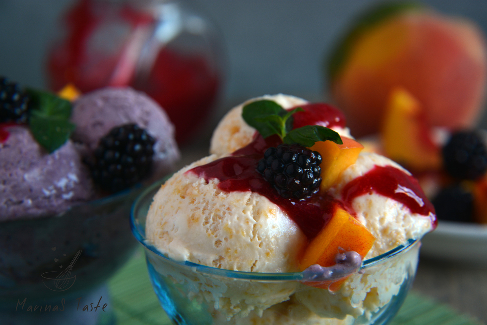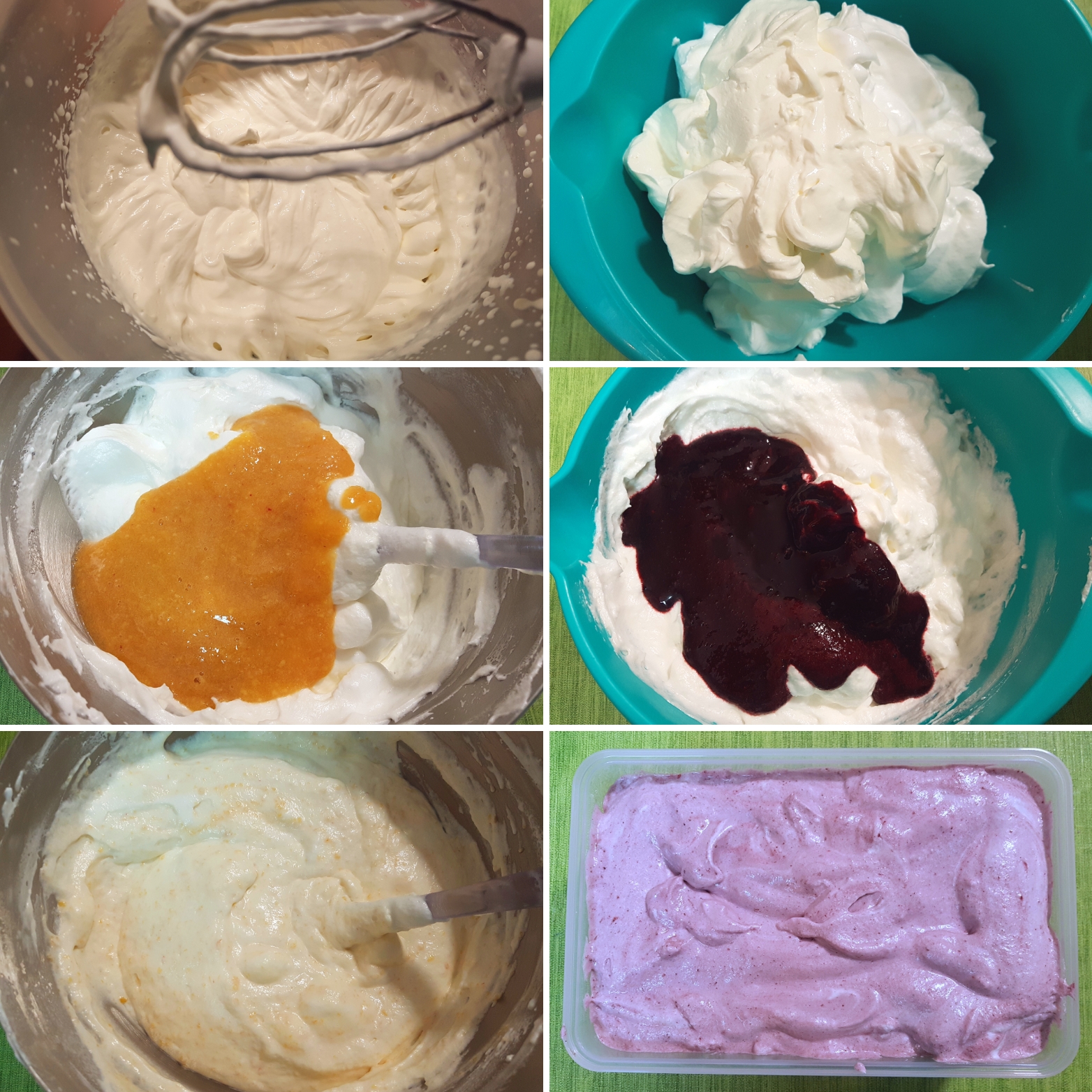Kad sam podelila bila recept za tetka Klarin sladoled mnogi su me pitali kako da i belanca učine bezbednim, odnosno kako da izbegnu da ih koriste sirove. Slična nedoumica se javila i nakon drugih recepata gde su se žumanca termički obrađivala, a belanca ne (kao za Markizu) Smatrala sam da je rizik ipak dovoljno mali da bismo toliko brinuli, al opet nisam bila 100 % sigurna i spokojna. I tako sam ipak rešila da probam metod kojim se inače priprema domaća šampita i to evo u ovom receptu za voćni sladoled. Obzirom da vam nakon pripreme sladoleda iz aparata preostanu baš četiri belanca ovo je odličan način da ih iskoristite.